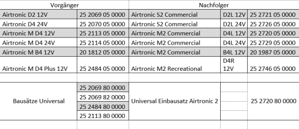 Der neue Uni Bausatz 25 2720 80 0000 enthält keine Hutze, kein Ausströmgitter, keine Schellen für den Luftschlauch und keine Heizluftschläuche mehr!!!